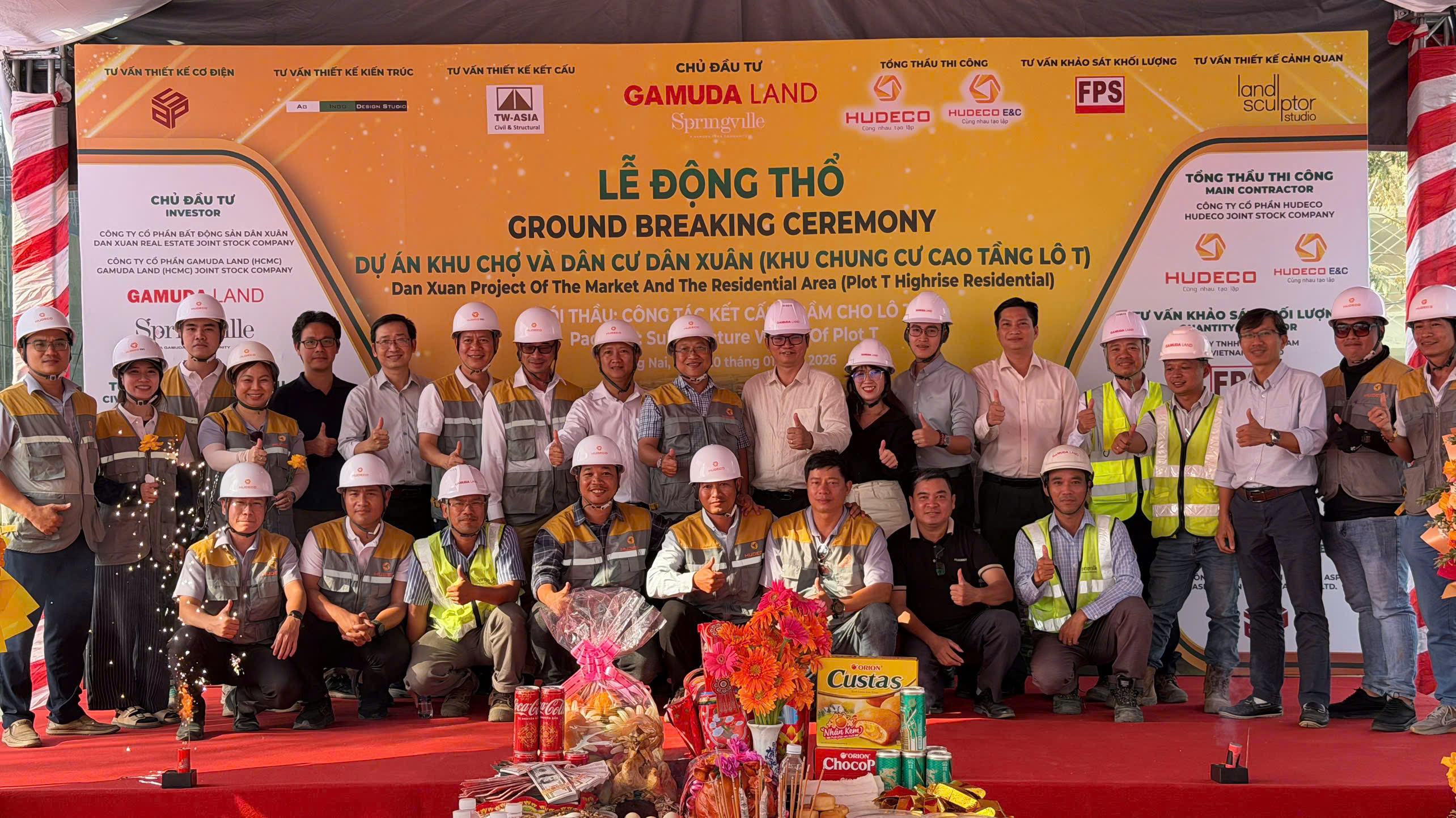 Buổi lễ khởi công vinh dự đón tiếp đại diện Chủ đầu tư – Công ty Cổ phần Bất Động Sản Dân Xuân, cùng Ban Lãnh đạo HUDECO GROUP: