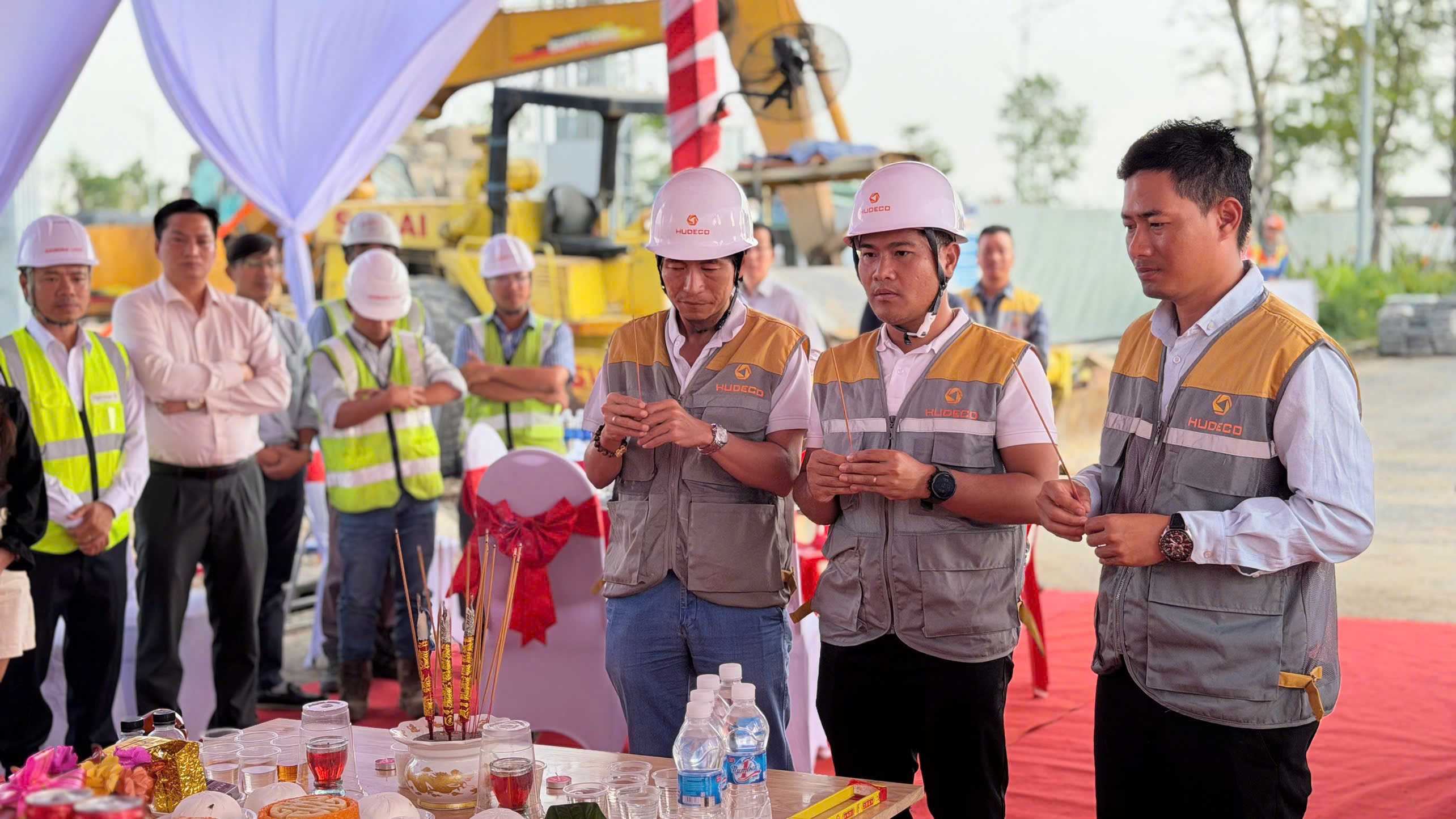 Về phía HUDECO E&C có sự hiện diện của Ông Hồ Hữu Xuân – Giám đốc HUDECO E&C, cùng Ông Vũ Minh Trí – Phó Giám đốc, phụ trách dự án; đồng thời có sự tham gia của Ban Điều hành và đông đảo CBCNV HUDECO E&C trực tiếp tổ chức và thực hiện nghi thức khởi công..