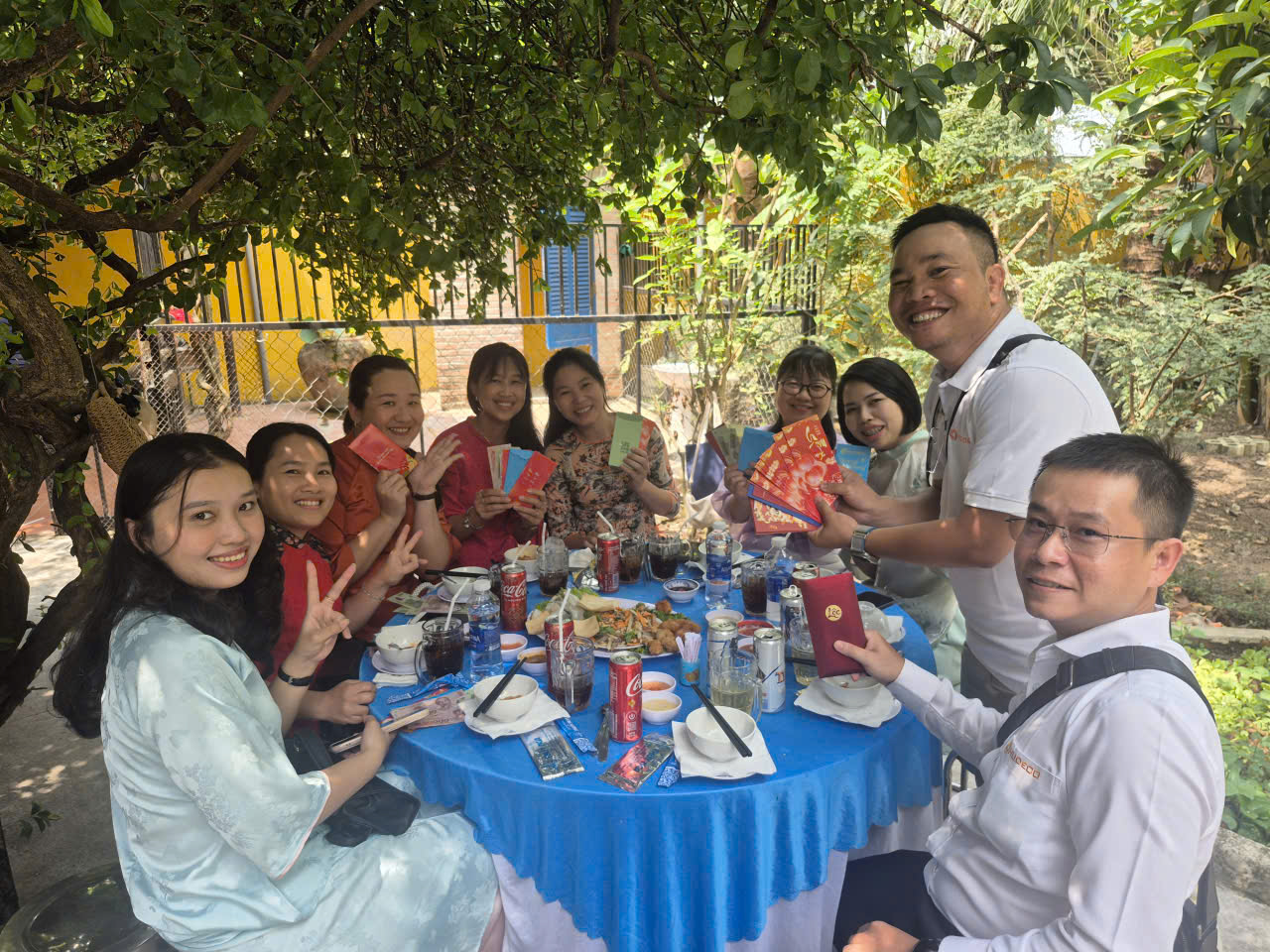 Khép lại hành trình khai xuân là chương trình tiệc Tân niên thân mật, trong không gian ấm cúng và gần gũi, Ban Lãnh đạo và toàn thể CBNV đã cùng trao nhau những câu chúc may mắn, ấm áp và những phong đỏ lì xì đầy may mắn, tượng trưng cho những điều tốt đẹp nhất cho tất cả anh chị em HUDECO.